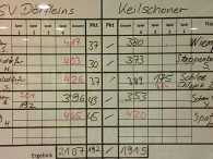 Die Kegelabteilung des SV Dörfleins steht im Halbfinale des Domreiter-Wanderpokals 2015/16. Mit 2178:1831 besiegte der Sportverein die Zufallskegler auf heimischer Bahn.